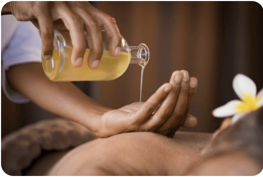 Abhi means bright or glowing and anga is body. Abhyanga gives glow to the body. It's believed to promote wellness and balance, along with stress relief and healthy skin. The technique involves applying warm oil to the entire body and massaging each part. Massage can improve relaxation, blood flow, and general health.